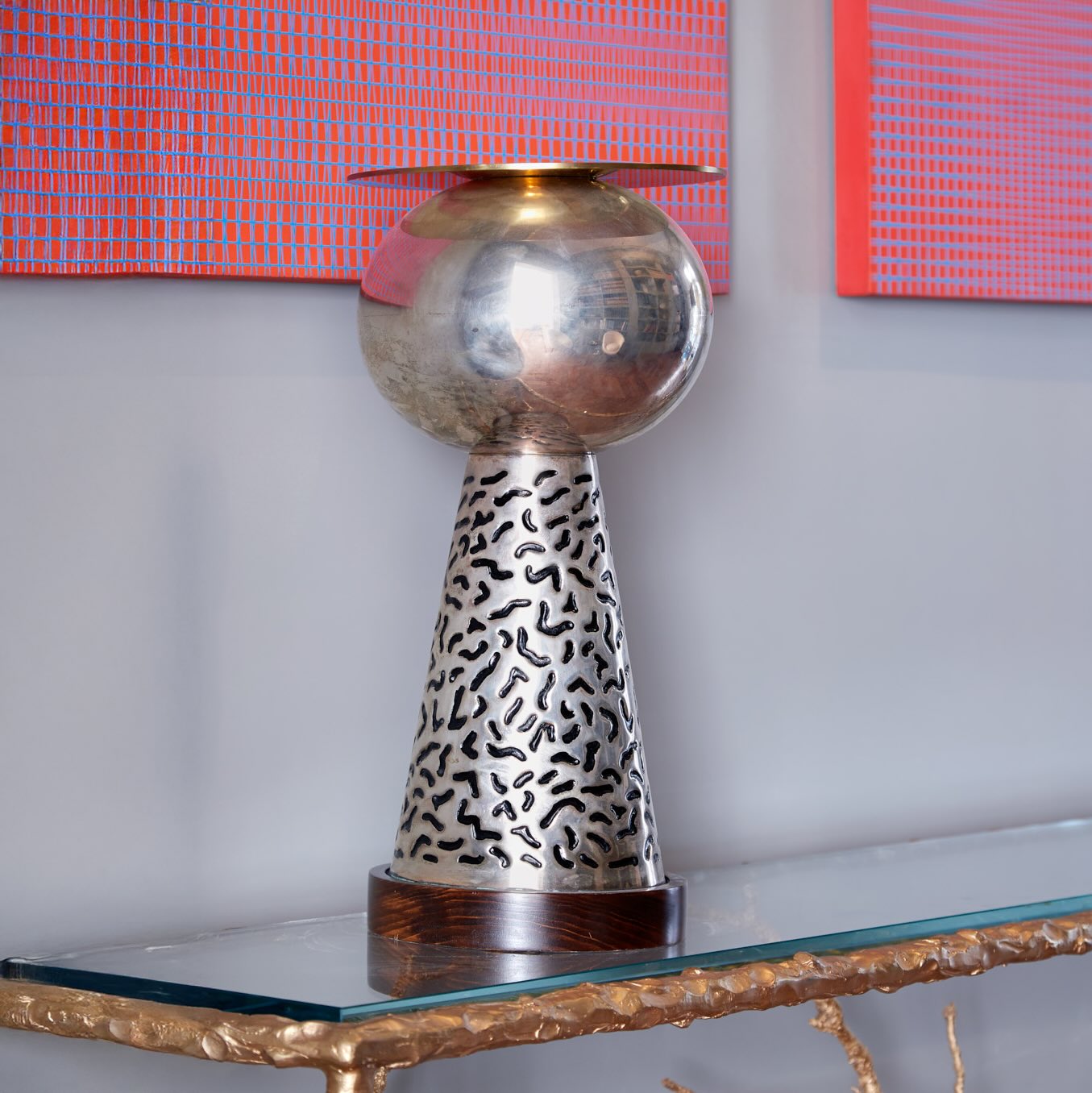 The inscription “Ettore Sottsass per Memphis“ is painted in black in a cavity made under the base.