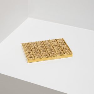 Box in gilded bronze engraved with a pattern of ancient chest. Stamped ‘Line Vautrin’ underneath.