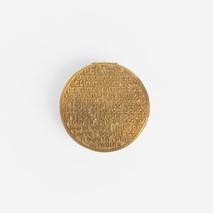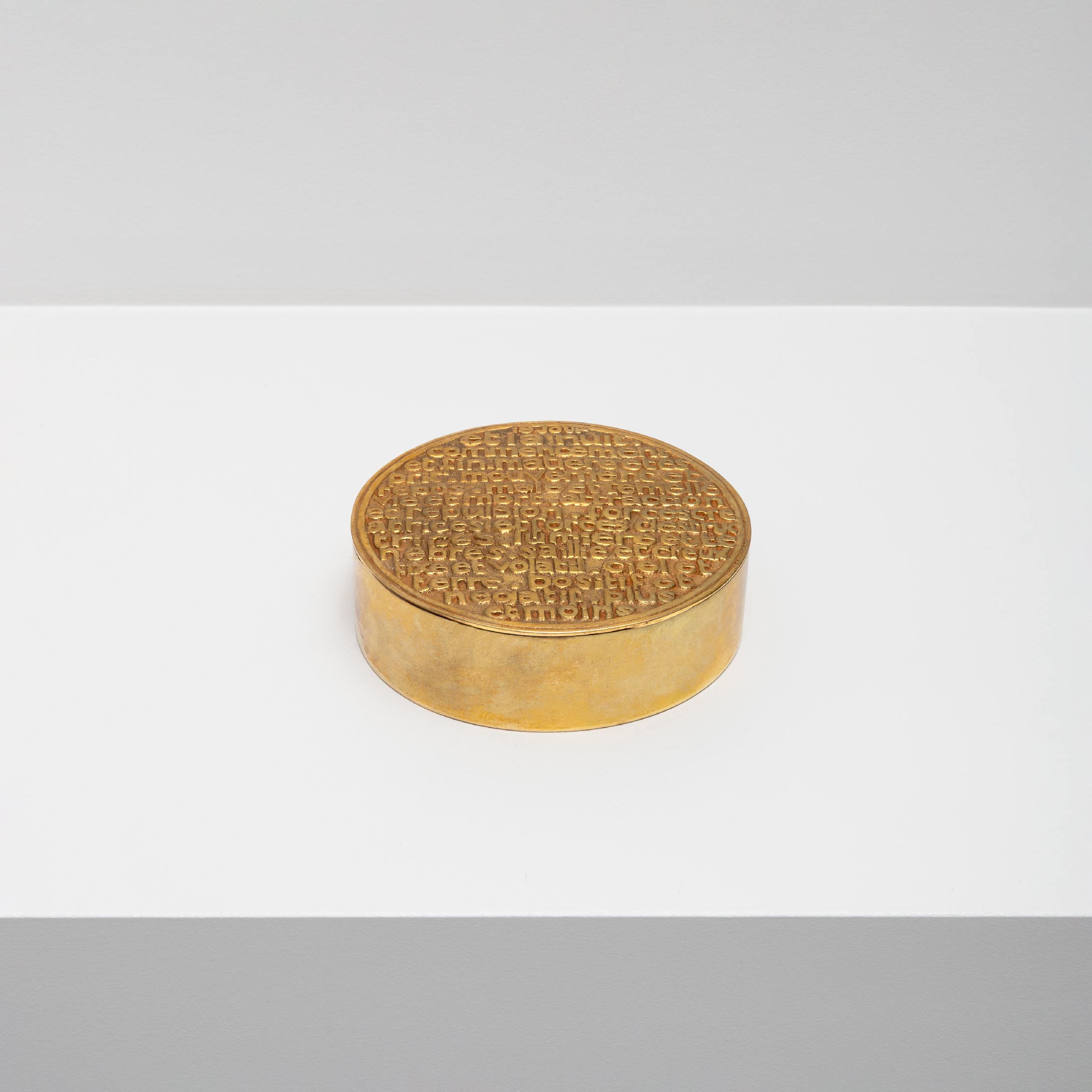 Box in gilded bronze with a circular shape « La monade » sometimes called « les antagonistes » and engraved with words (antagonisms).