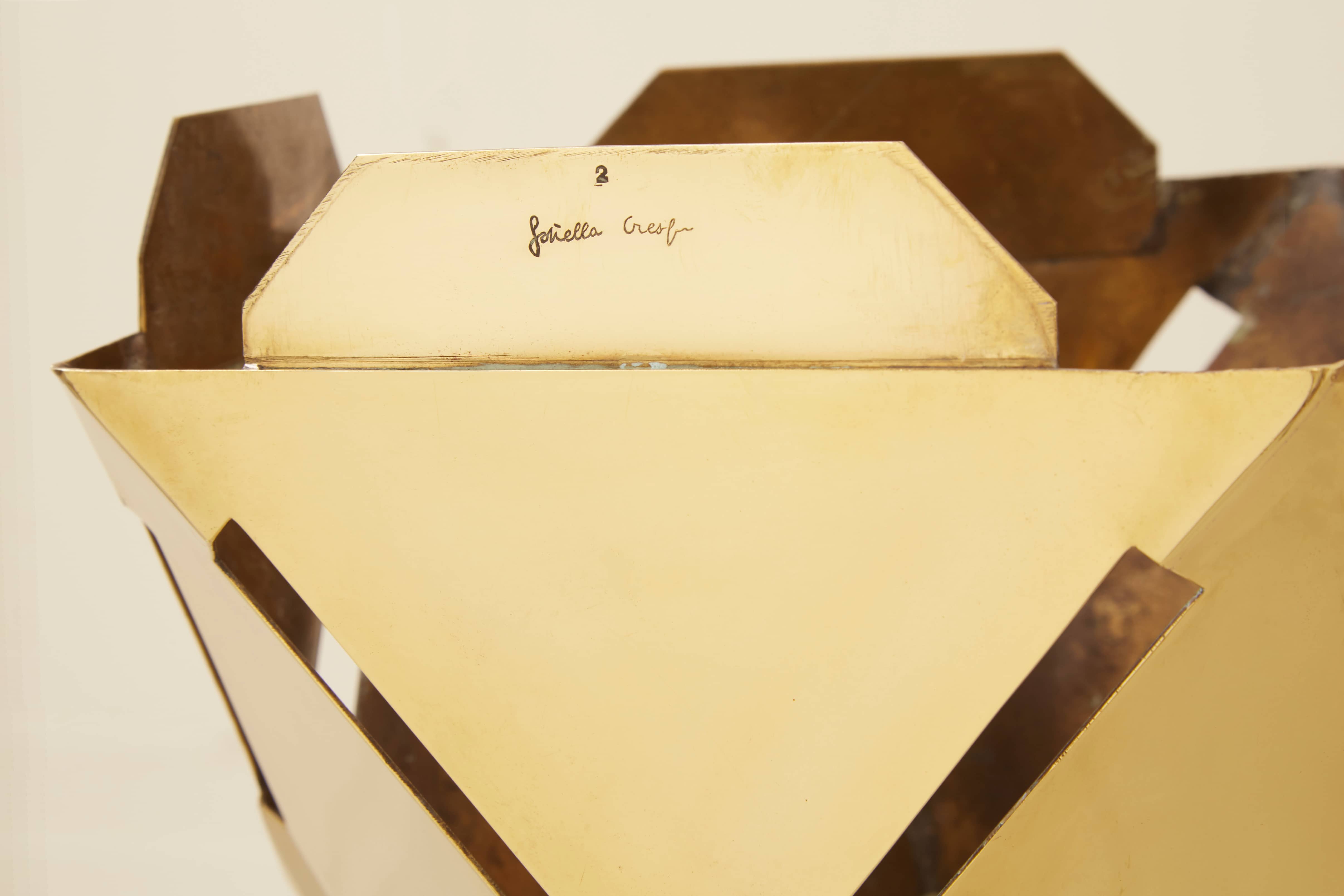 Il est signé à deux reprises « Gabriella Crespi » en lettres cursives sur la base et sur l’abat-jour. Cette pièce est référencée dans les archives Gabriella Crespi sous le numéro 2104710039.